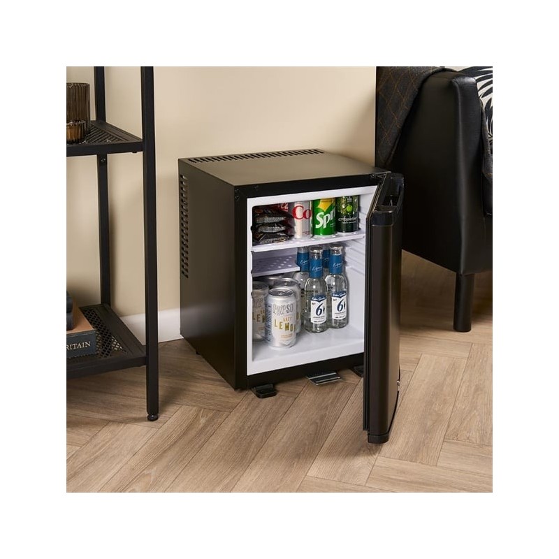 Adjustable internal shelves offer excellent storage versatility, accommodating a wide range of drinks and snacks to suit guest preferences. For enhanced convenience and security, the minibar is compatible with the Corby minibar slider kit for built-in installation, while the lockable door helps protect valuable stock.