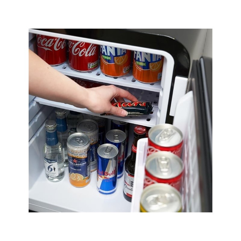 With a generous 40-litre capacity, the minibar offers ample storage for a variety of chilled beverages and snacks. The thoughtfully designed interior includes energy-efficient LED lighting for clear visibility and adjustable shelves, allowing flexible organisation to suit different product sizes.
