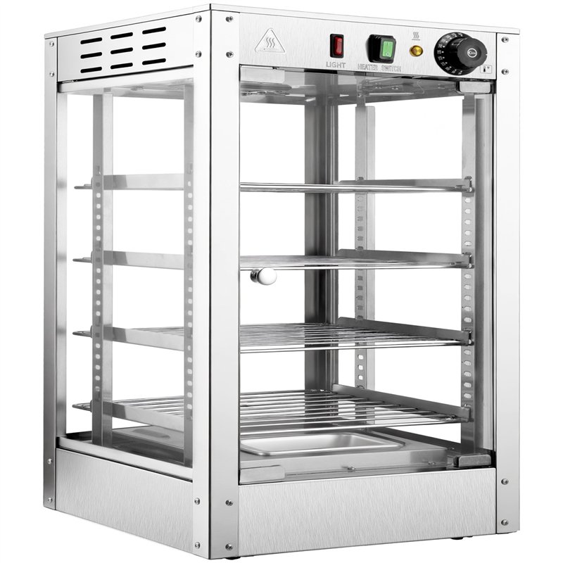 Commercial Pizza Warmer Stainless Steel 4 Racks Tempered Glass Adjustable Thermostat Width for 18” Pizzas | Stalwart DA-PW0118