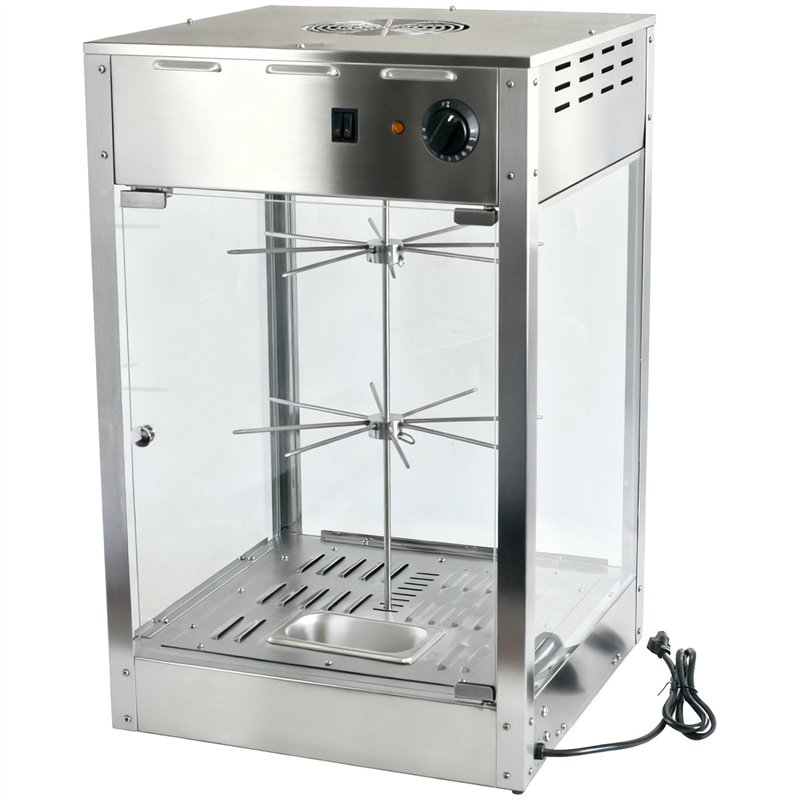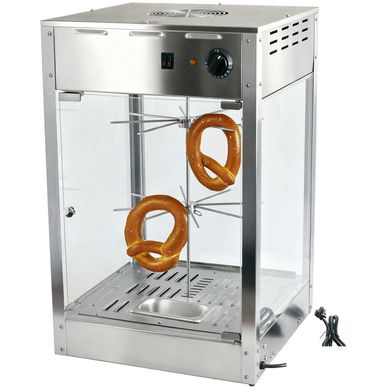 Commercial Churro/Pretzel Warmer Stainless Steel Rotating Rack Inside Lamp Adjustable Thermostat Width for 14” Snacks | Stalwart