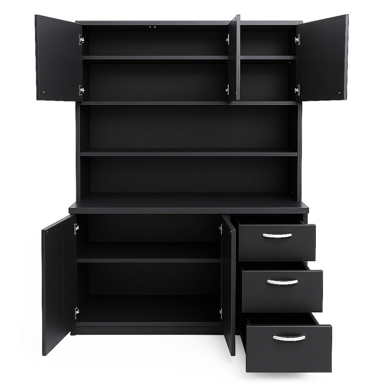 - Doors: Multiple hinged doors with integrated handles