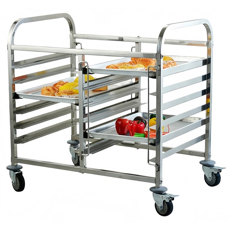 Double Rack/Tray/Pan Trolley Stainless Steel Bakery 600×400mm 6×2 Tier 900×820×950mm | Stalwart DA-JSN240