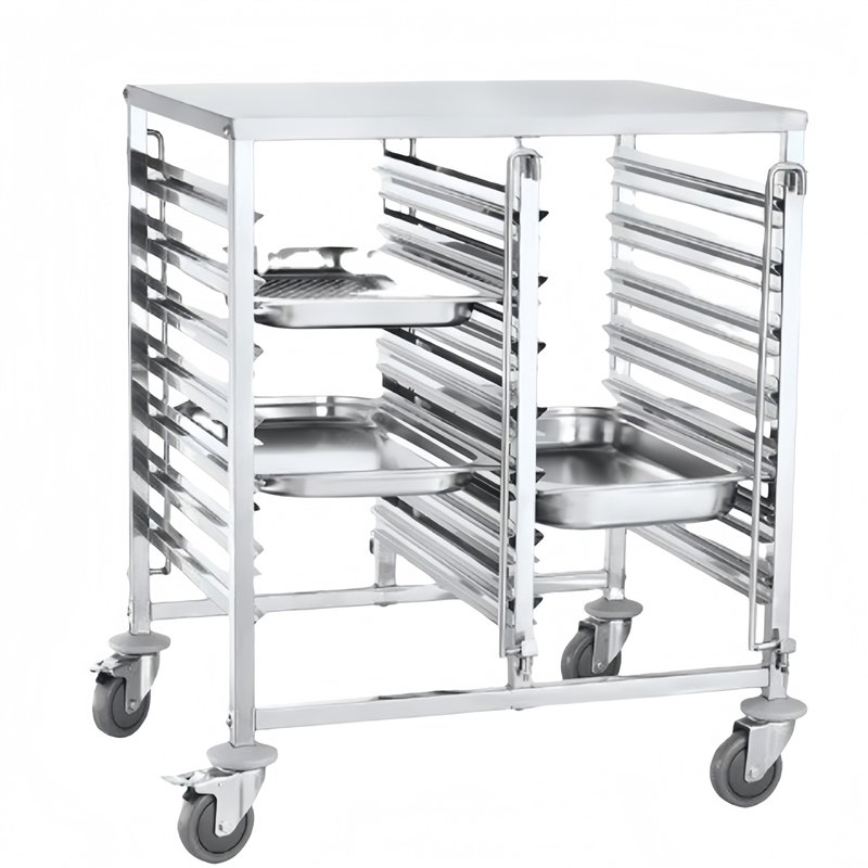 The wide, dual-column layout allows simultaneous access to pans from both sides, improving workflow efficiency in high-volume kitchens such as hotels, restaurants, catering facilities, and buffet operations. Smooth-rolling swivel casters ensure easy mobility, while the reinforced stainless steel construction guarantees long-lasting durability in demanding food-service environments. The DA-JSN254 is an excellent choice for commercial catering environments seeking to enhance efficiency and productivity.