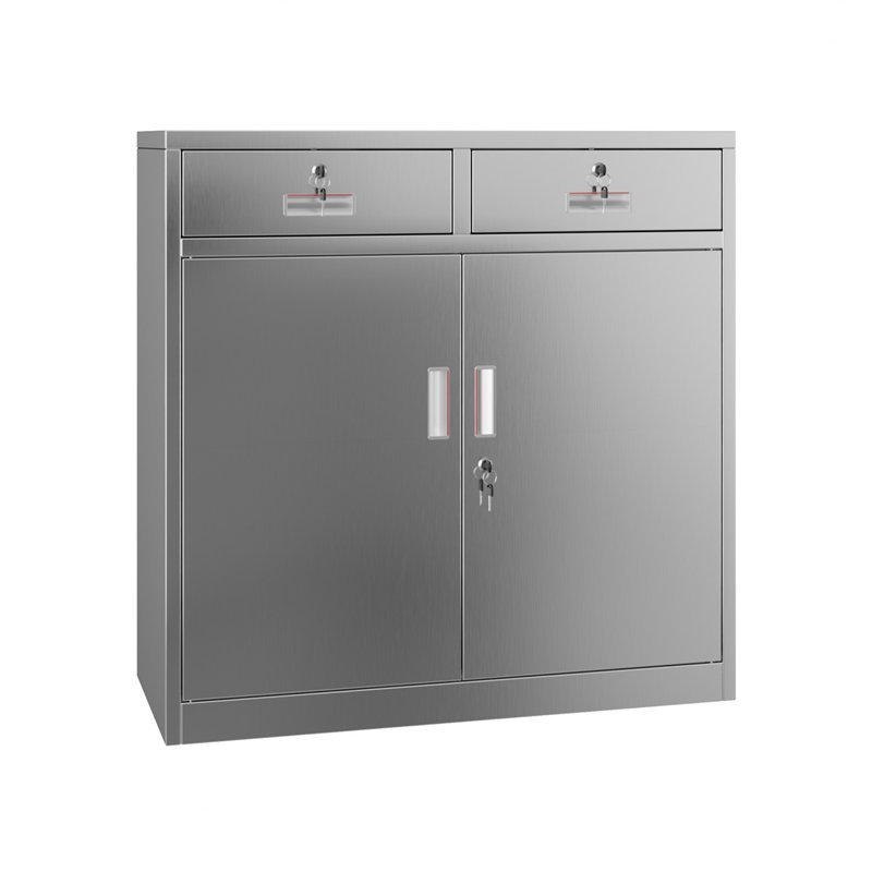 Commercial Stainless Steel Upright Cabinet with 2 Drawers and Double Doors, 900×900mm | Stalwart DA-SARTSS2DW