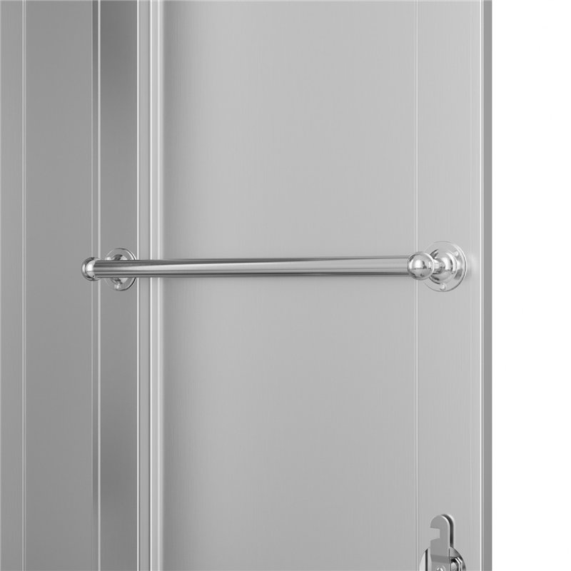 - Includes multiple shelves, hanging hooks, mop/broom storage space, and a base tray for efficient organisation