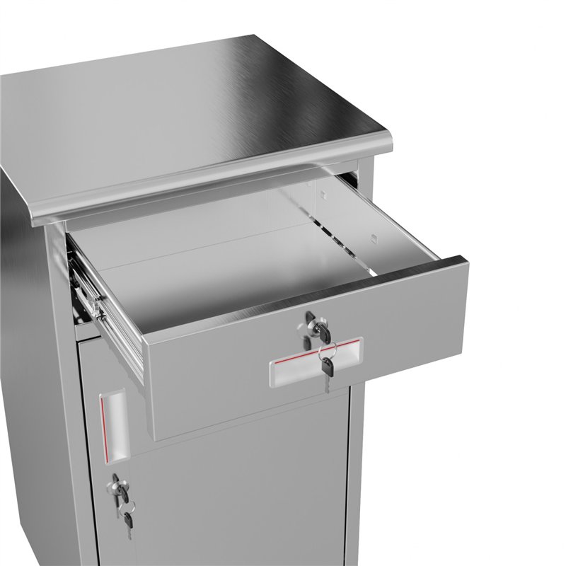 - Practical vertical layout combines a drawer and enclosed storage space, suitable for confined areas