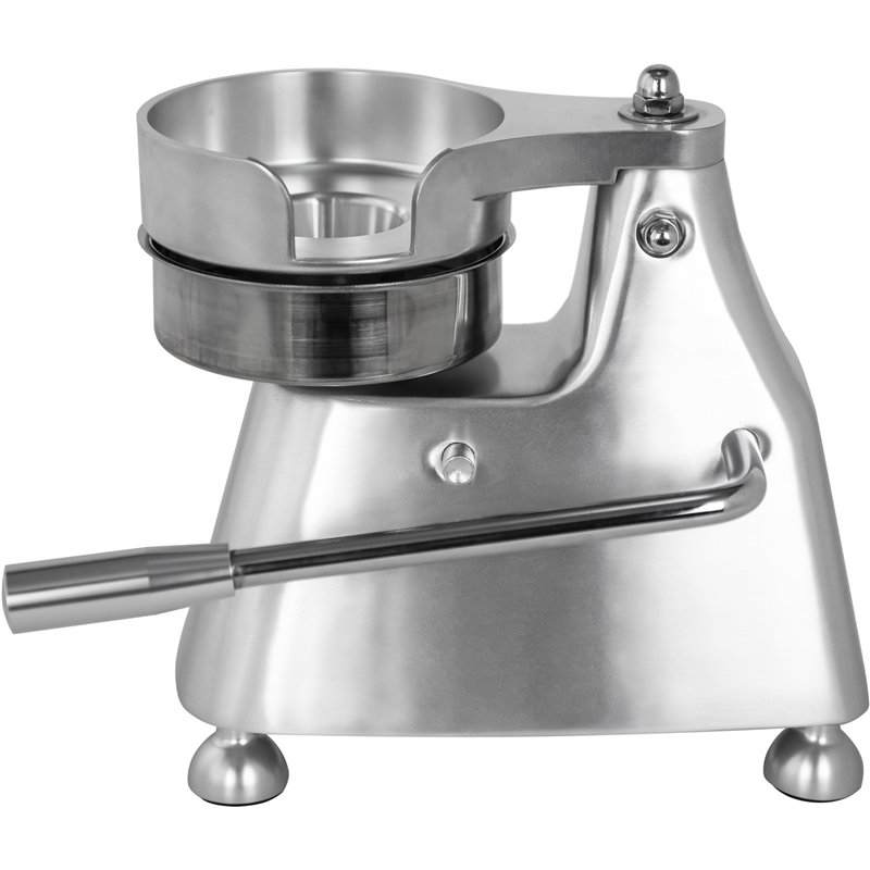 This manual burger press is ideal for producing beef patties, chicken patties, veggie burgers, and other formed foods with reliability and speed. The DA-HMP135 3-in-1 Hamburger Press is a must-have for any commercial kitchen looking to streamline their burger production process.