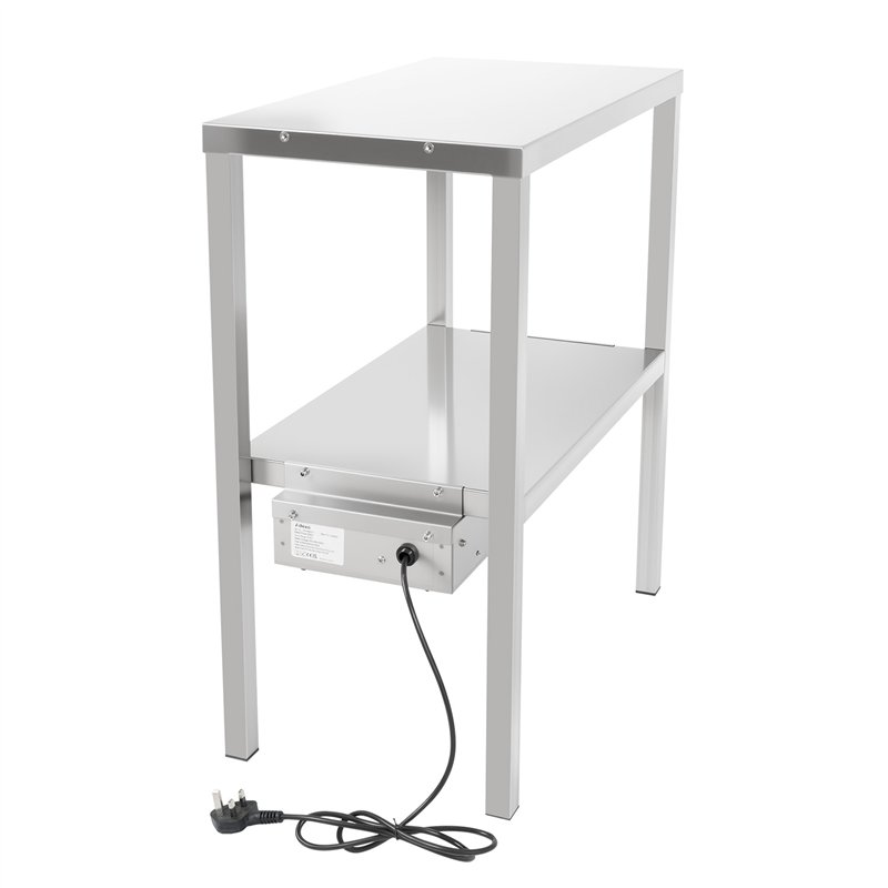 The double-layer structure maximizes workspace by providing an additional shelf, allowing chefs and servers to organize plates, pans, or food items efficiently. The built-in heat bridge delivers consistent, even heating across the serving area, ensuring meals stay warm, fresh, and ready for plating throughout service periods.