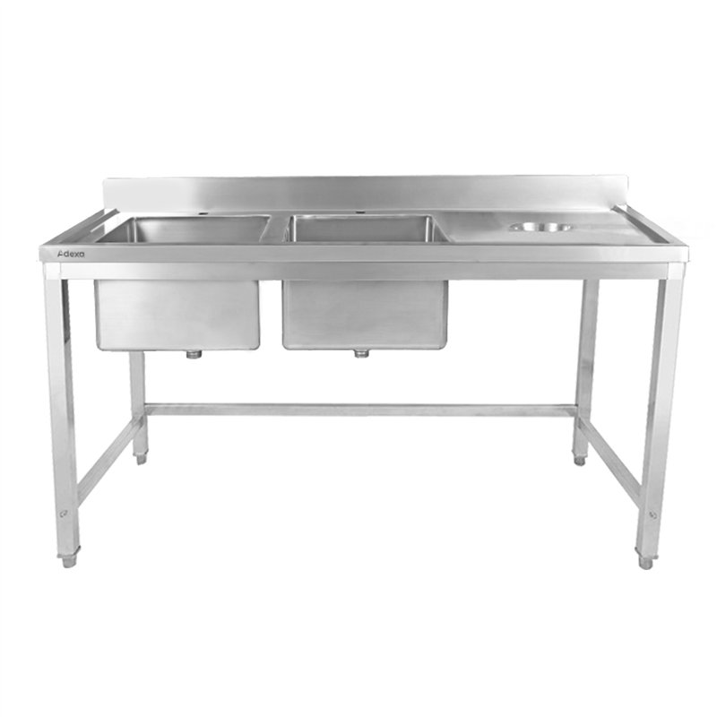 Commercial Stainless Steel Double Sink with 2 Left Bowls & Right Scrapping Hole + Splashback 1500x600x950mm | Stalwart DA-WHS