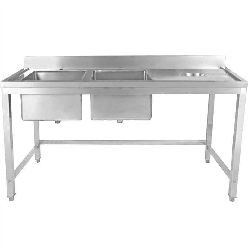 Commercial Stainless Steel Double Sink with 2 Left Bowls & Right Scrapping Hole + Splashback 2000x700x950mm | Stalwart DA-WHS