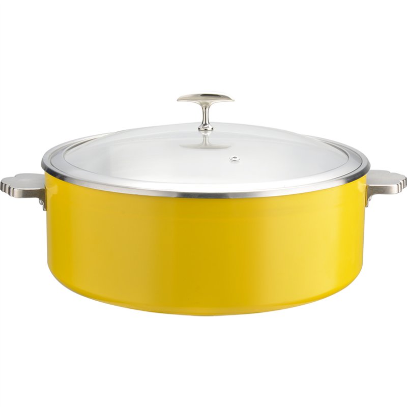 Hammered Tri‑Ply Stainless Steel 4.5L Casserole Φ320×H120mm with Glass Lid & Ceramic Food Pan – Yellow| Stalwart DA-E0912005M
