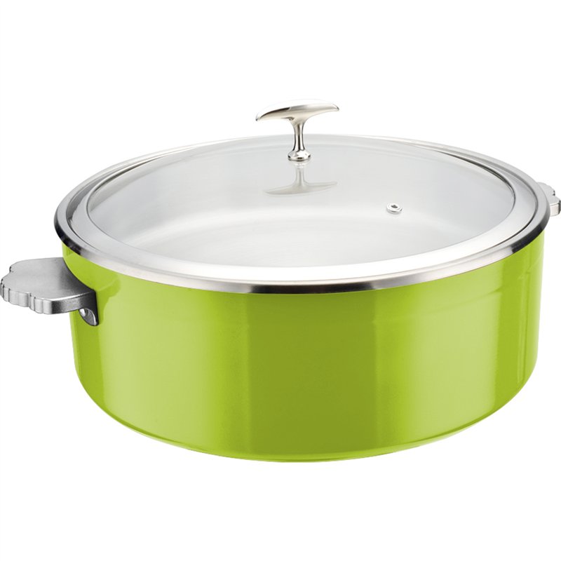 Hammered Tri‑Ply Stainless Steel 4.5L Casserole Φ320×H120mm with Glass Lid & Ceramic Food Pan – Green| Stalwart DA-E0912010M