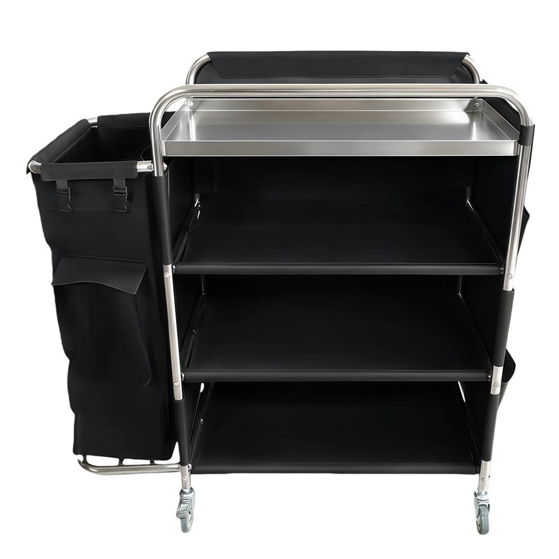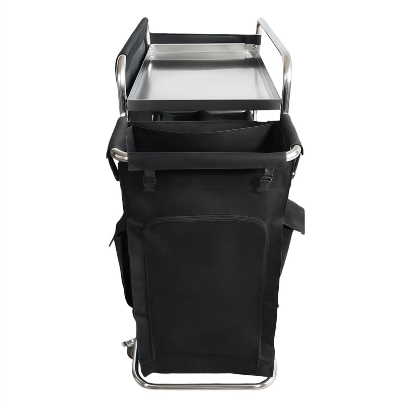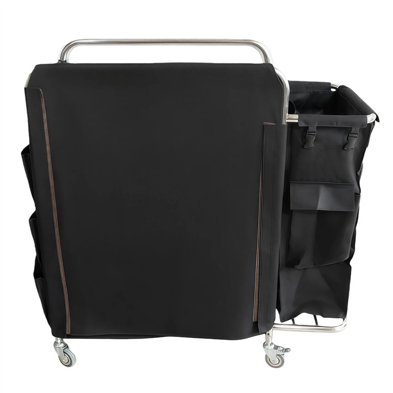 - Includes a large side-mounted coated fabric laundry bag that is waterproof and easy to clean for efficient collection of soiled linens