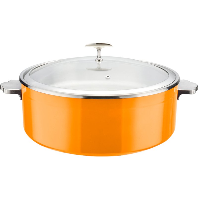 Hammered Tri‑Ply Stainless Steel 4.5L Casserole Φ320×H120mm with Glass Lid & Ceramic Food Pan – Orange| Stalwart DA-E0912015M