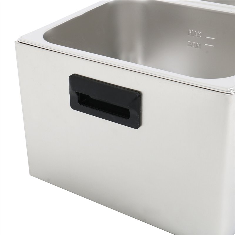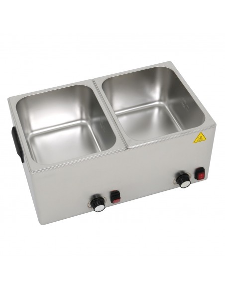Each tank operates independently, allowing flexible use for different food items or varied batch sizes. The hinged stainless steel covers provide easy access while retaining heat, and the side Bakelite handles ensure safe, cool-touch handling during operation. Built with a durable stainless steel body, this warmer is robust, hygienic, and easy to clean—ideal for high-demand environments.