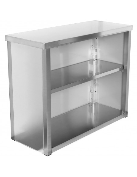 The open-shelf design provides quick and convenient access to frequently used kitchen items, making it ideal for busy food preparation areas. With dimensions of 1000 × 400 × 800 mm, the cabinet offers ample storage while the wall-mounted installation saves valuable counter and floor space. Smooth stainless steel surfaces ensure effortless cleaning and maintain high hygiene standards essential for professional food service operations.