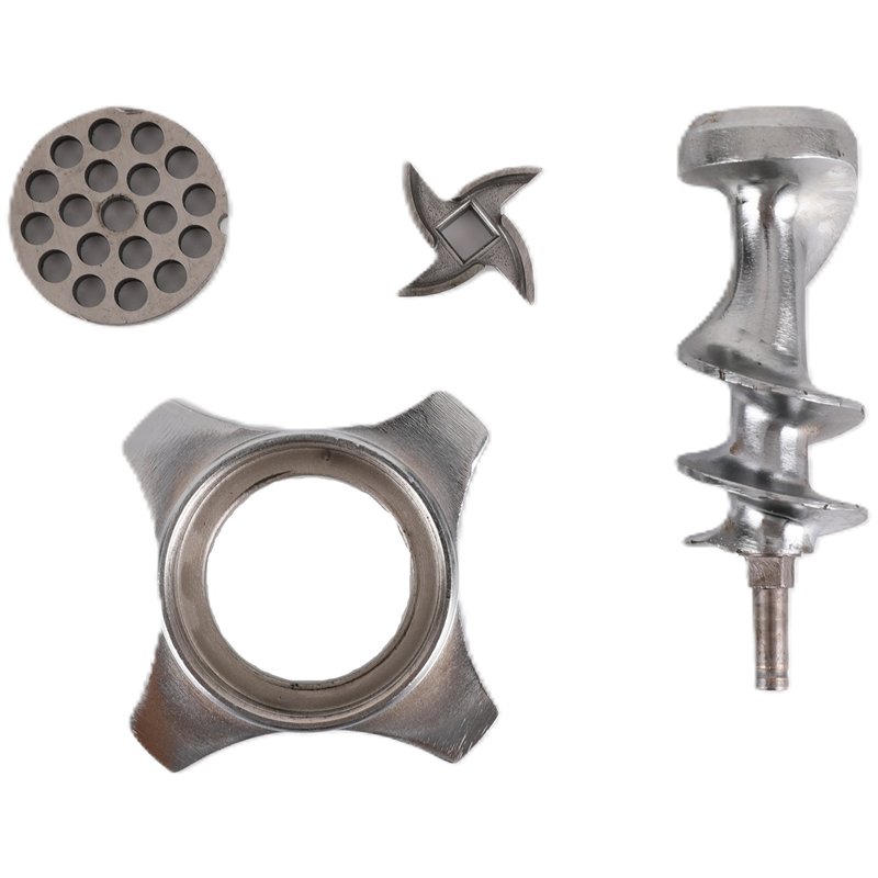 The DA-MK8 electric meat grinder is constructed with a stainless steel housing and feed tray, ensuring durability, hygiene, and ease of cleaning. It features a stable base with non-slip feet for safe operation and a simple on/off switch for easy control. With essential grinding components like a mincing plate, cutting blade, and auger included, the DA-MK8 is ready for daily commercial use where reliability and performance are paramount. Its robust construction, efficient performance, and compact design make the DA-MK8 electric meat grinder an excellent choice for commercial catering environments.