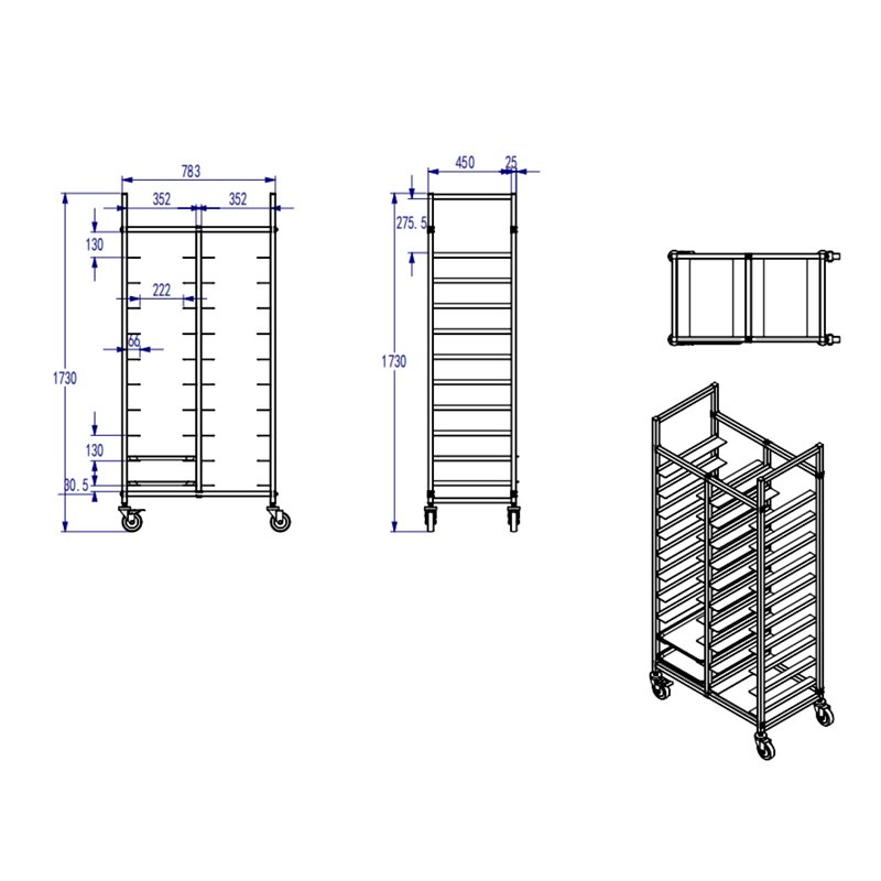 Equipped with heavy-duty castor wheels and integrated brake locks, the unit provides effortless mobility and secure positioning. Its reinforced welded structure enhances durability, making it suitable for fast-paced operations such as restaurants, hotels, banquet halls, canteens, and catering services.