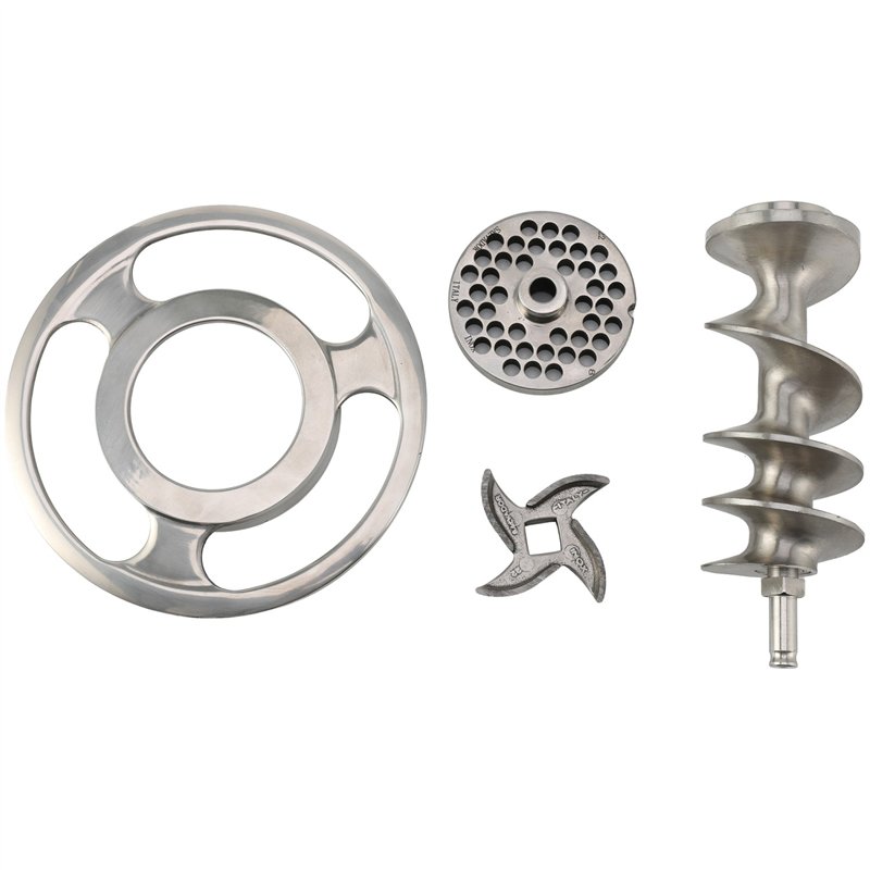 The unit comes equipped with 6 mm and 8 mm grinding plates, a stainless steel auger, and a cutting blade, making it versatile for a wide range of meat preparation applications. Forward and reverse functions help clear blockages easily, while the solid, freestanding design with stable non-slip feet ensures safe operation at all times.