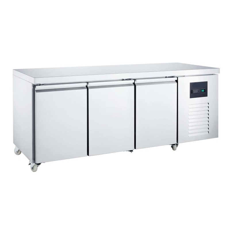 This commercial freezer counter provides high-capacity frozen storage combined with a durable stainless steel work surface, making it ideal for restaurants, hotels, catering kitchens, and professional food preparation environments. With a generous 457-litre capacity, a powerful ventilated cooling system, and a temperature range of -10°C to -20°C, it delivers reliable deep-freeze performance even under demanding conditions.