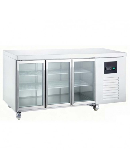 This refrigerated counter combines storage capacity, visibility, durability, and practical workspace functionality — a reliable and efficient solution for professional food and beverage operations.