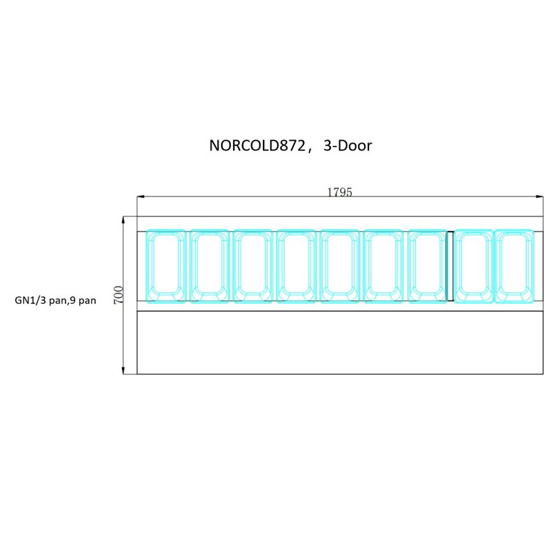 Commercial Refrigerated Prep Counter 457L With 3 Stainless Steel Doors 9×1/3 GN Pan – 1795×700×1037mm | Stalwart DA-NORCOLD872