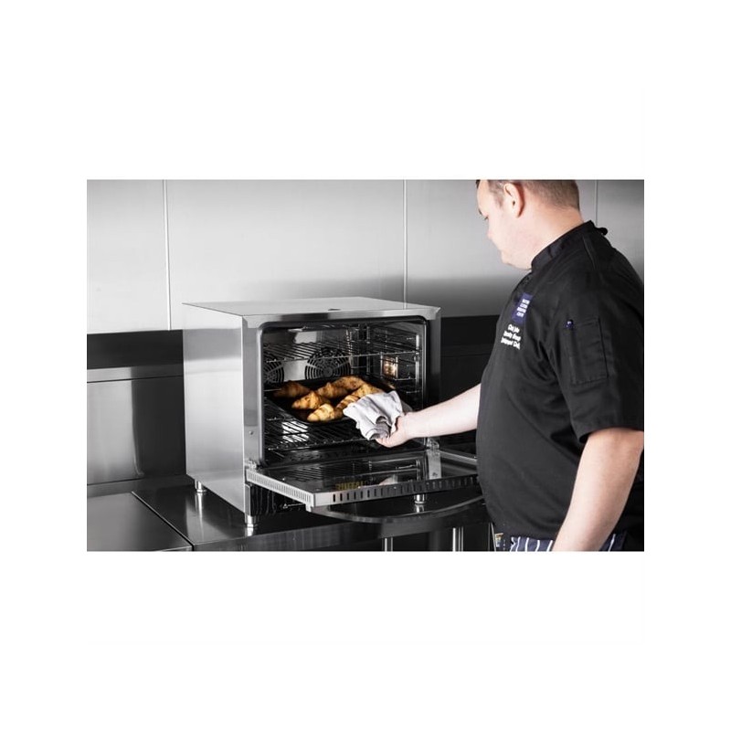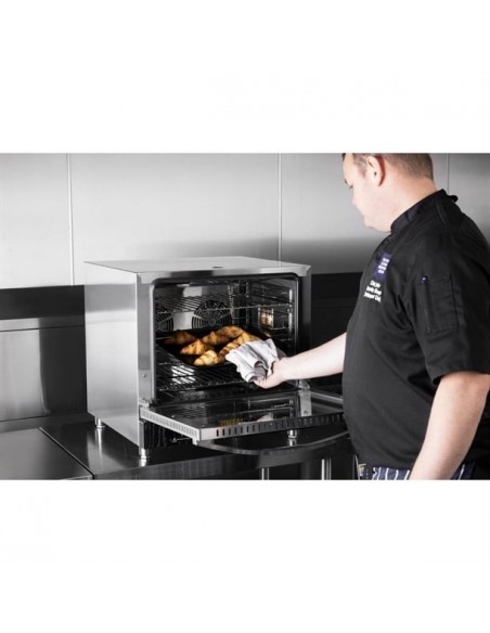 Designed to accommodate up to four bakery trays (460 x 330 mm) or four 2/3 GN gastronorm trays, the oven allows for quick and effortless loading and unloading, improving workflow during busy service periods.