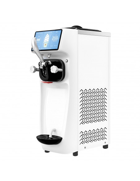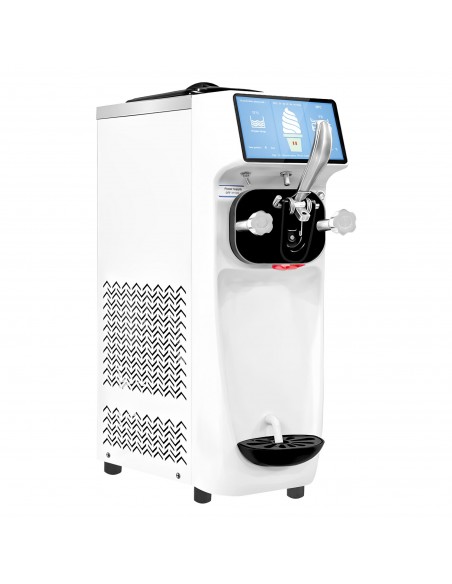 This countertop soft serve machine is equipped with an intuitive 7″ digital touchscreen display, making operation quick and simple while delivering precise control over each serving. Its pre-cooled hopper and air compressor ensure ingredients stay chilled and ready for consistent production, while the integrated portion counter automatically tracks servings dispensed — ideal for busy service periods.