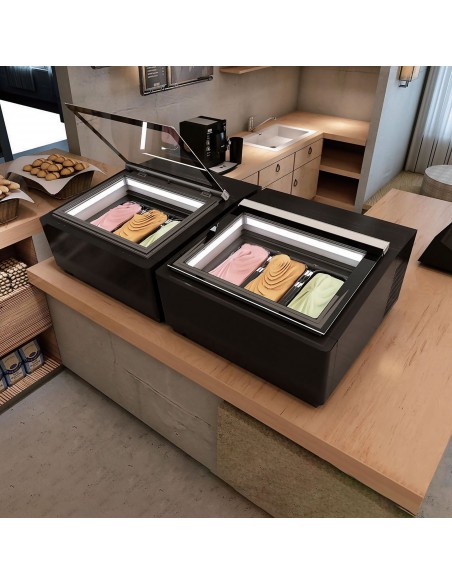 Countertop Ice Cream Freezer Napoli Display Black - Incl 3 × 5L Napoli pans