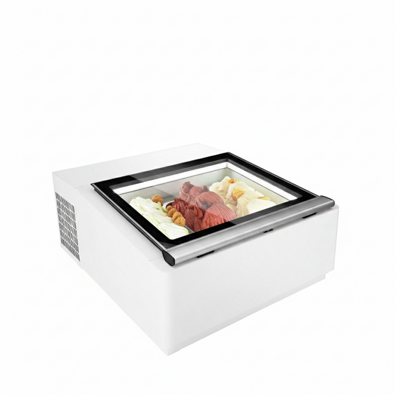 This tabletop ice cream display case maintains optimal temperatures between −16 °C and −18 °C with efficient static cooling and environmentally-friendly R290 refrigerant, ensuring your products stay perfectly frozen and ready to serve. The digital temperature display allows easy monitoring, while high-quality insulation helps reduce energy consumption and noise during operation.