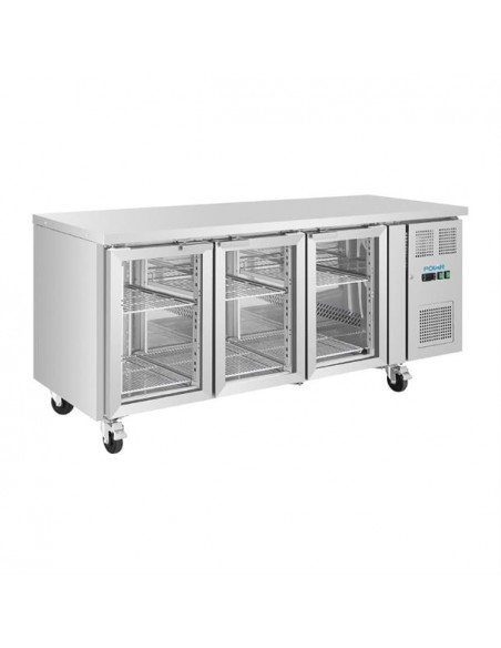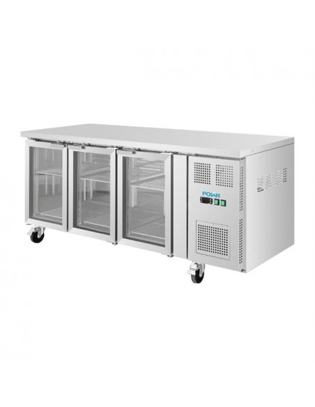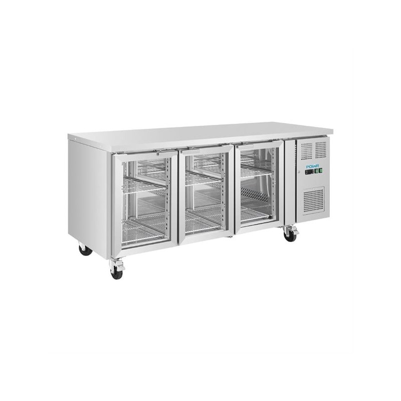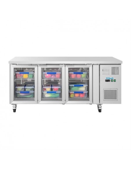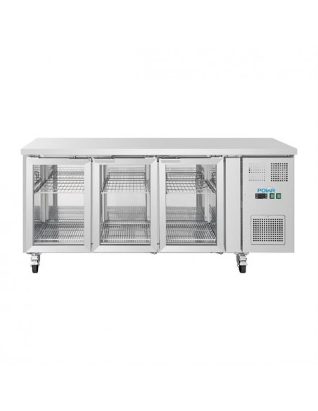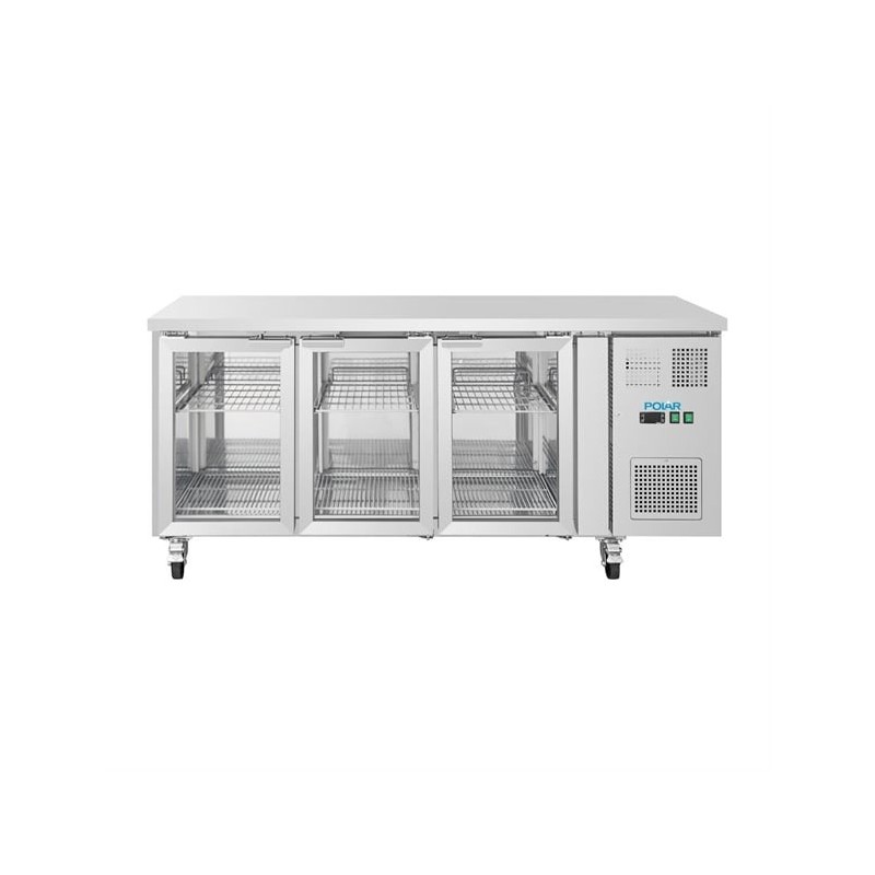 The Polar U-Series 3 Door Counter with Glass Doors is a high-performance commercial fridge designed for busy kitchens, cafés, and bars. Combining 465 litres of chilled storage with a durable stainless steel preparation surface, it keeps ingredients and beverages at optimal serving temperatures while maximising workspace efficiency.