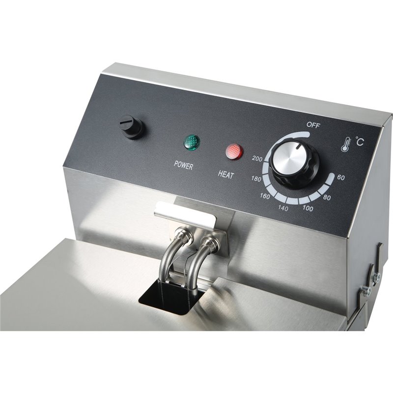 A great quality single tank professional electric fryer. Incredibly space saving with its 285mm width yet large capacity 6 litre tank. An ideal piece of equipment for high output fast food catering businesses it's a must have for any restaurant, café, takeaway or canteen. Huge discount savings at the moment at this bargain sale price.