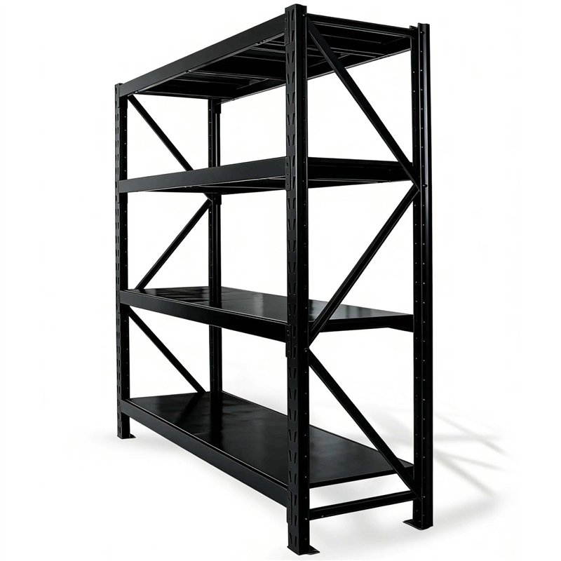 Long Span Warehouse Racking 2000x600x2000mm 4 Shelves Black | Stalwart DA-FUJI410BLACK