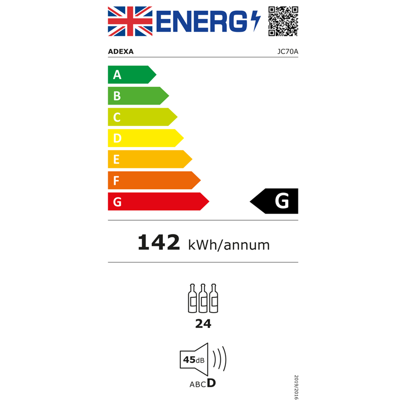 - Generous Capacity: The DA-JC70A can store up to 24 standard wine bottles on high-quality wire shelving, offering a net capacity of 70L.