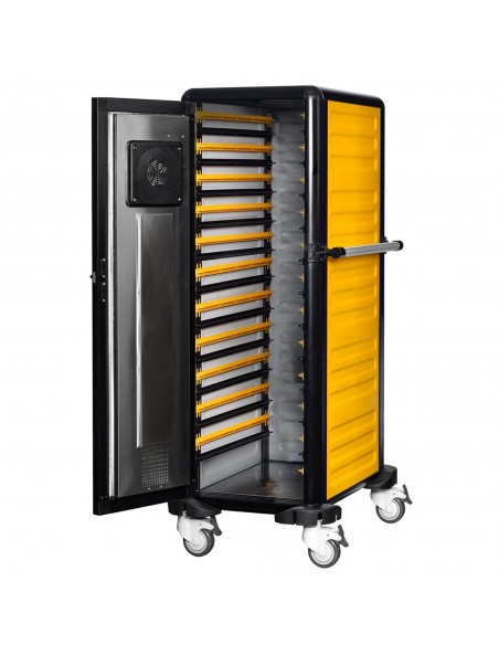 Constructed with a durable plastic exterior and hygienic interior, this trolley is designed for daily commercial use. The four castor wheels make it easy to move between prep and service areas, improving efficiency during busy events.
