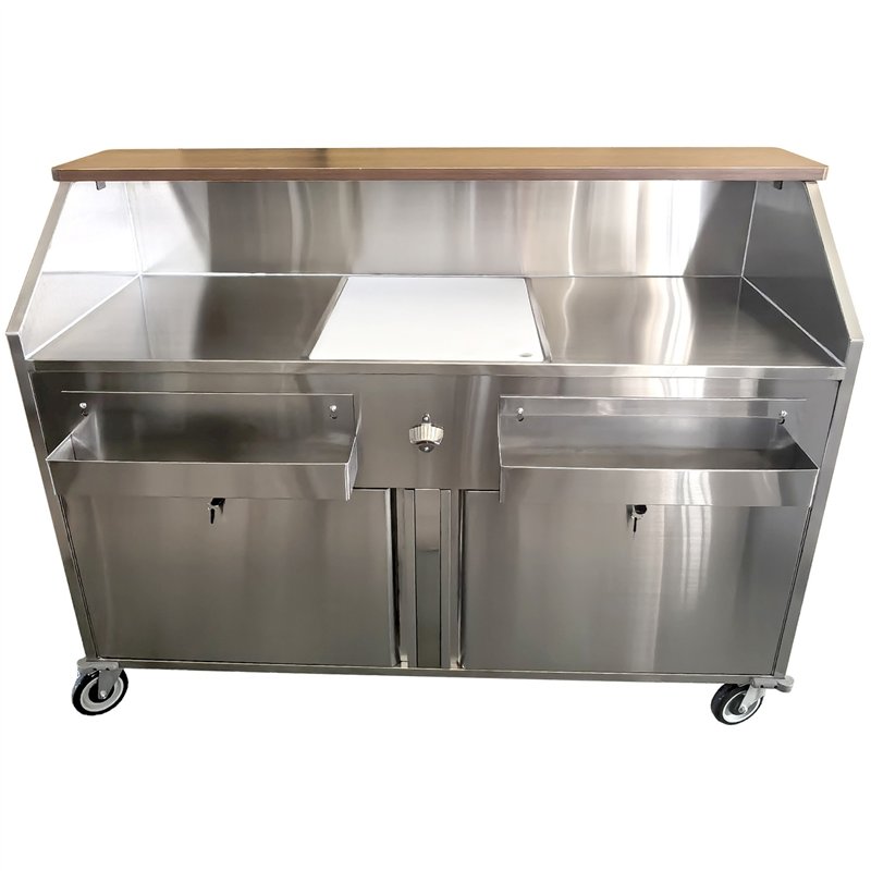 Commercial Stainless Steel Portable Bar with 2 Cabinets, Wooden Top, Ice Bin & Speed Rails 1600x610x1208mm | Stalwart DA-PB24