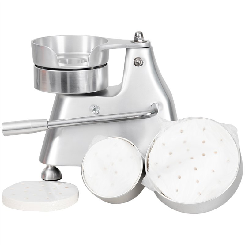 - It produces consistent, uniform burger patties without the need for electrical equipment.