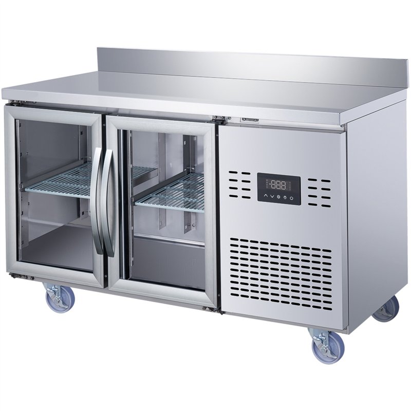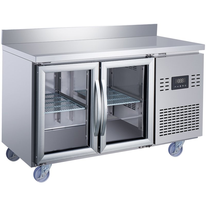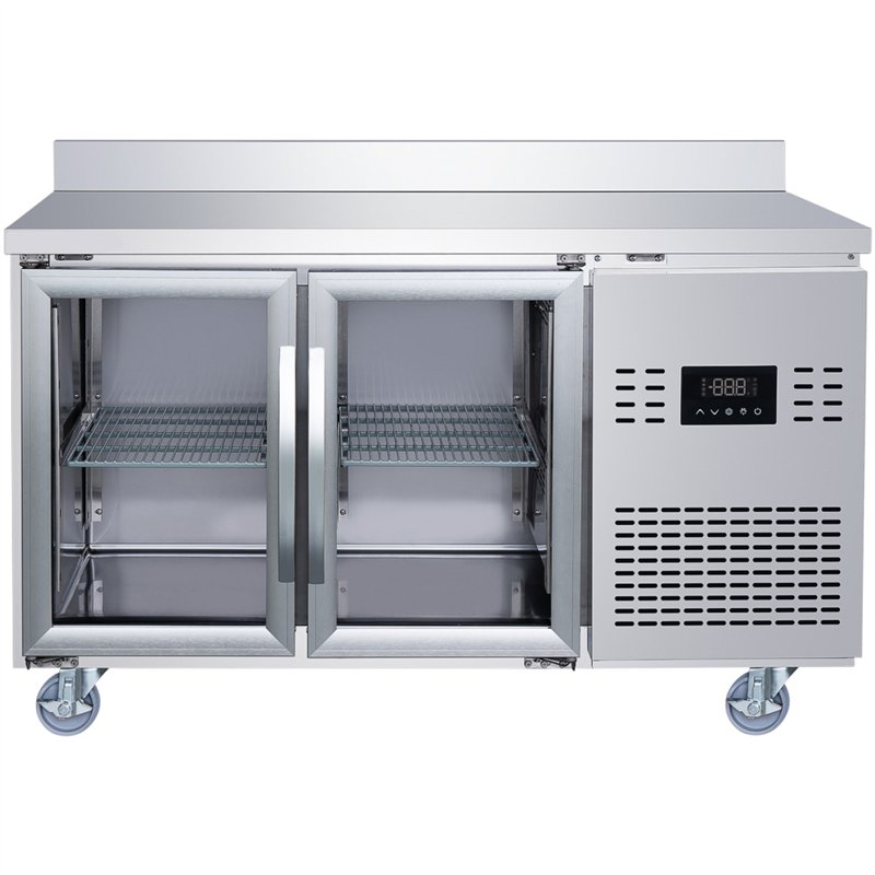 Commercial 2 Glass Door Counter Fridge with Upstand - Stainless Steel Prep Fridge 1349×700×950mm | Stalwart DA-SUP120