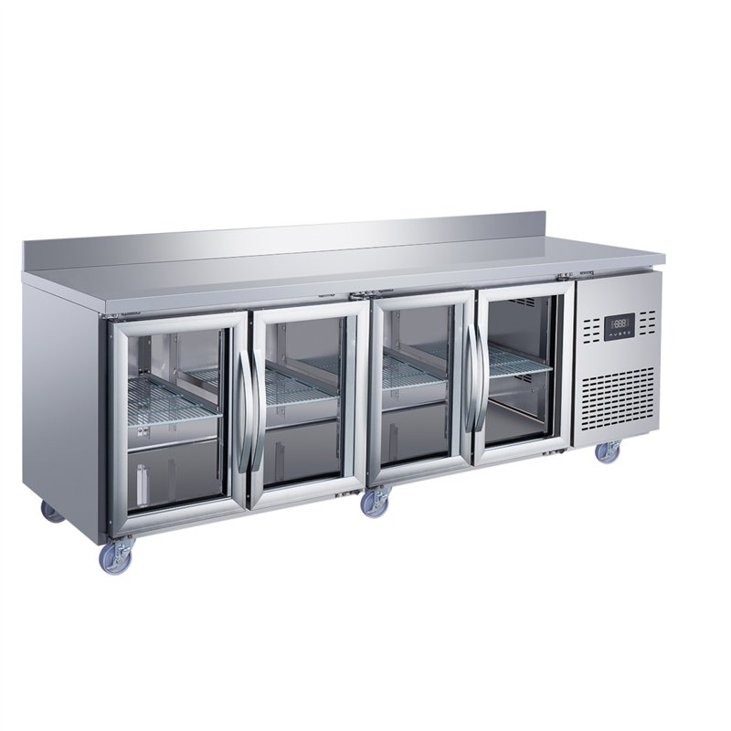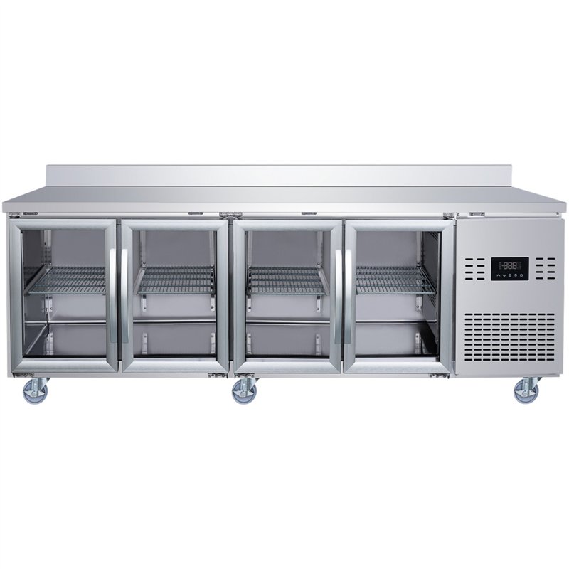 Commercial 4 Glass Door Counter Fridge with Upstand - Stainless Steel Prep Fridge 2239×700×950mm | Stalwart DA-SUP124