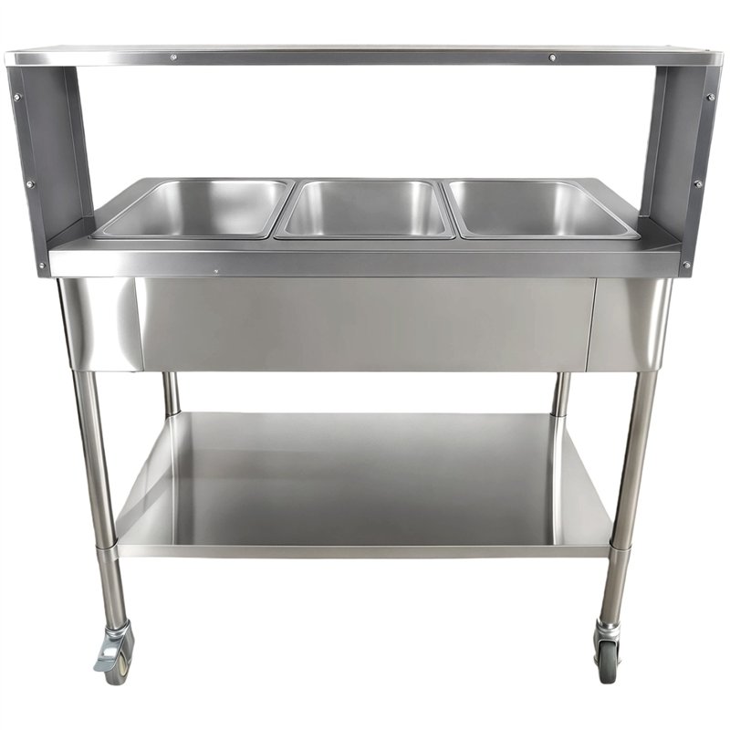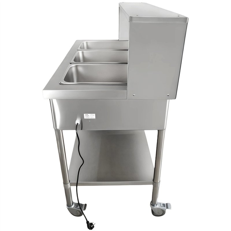 Mobile Bain Marie Food Warmer Table with Overshelf 3×GN1/1 Stainless Steel 1150×680×1350mm | Stalwart DA-PFD12070