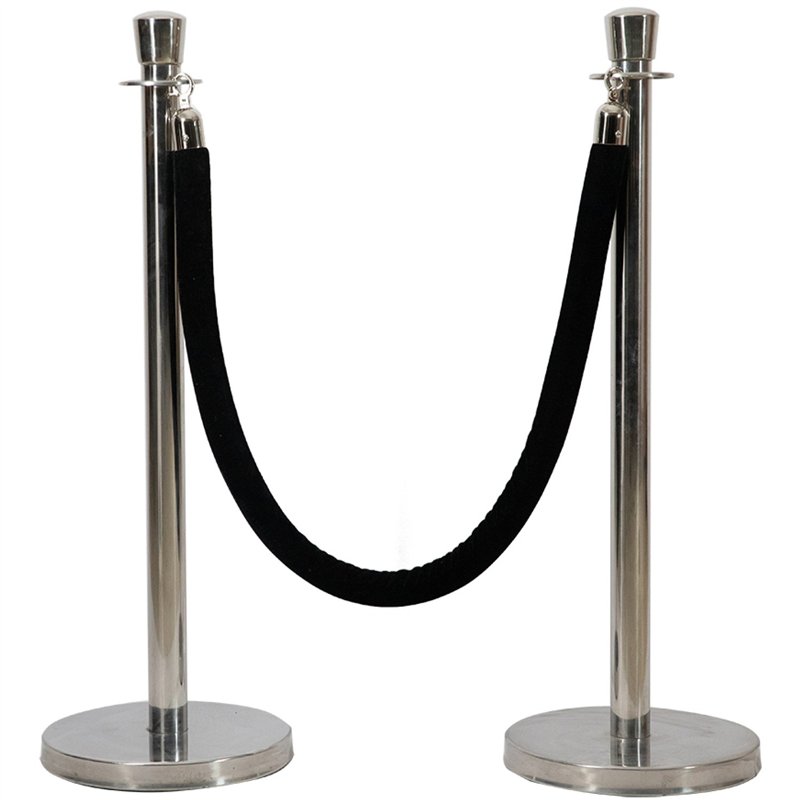 2pcs Silver Stanchion with Curved top 6ft Black Rope | Stalwart DA-AOX208