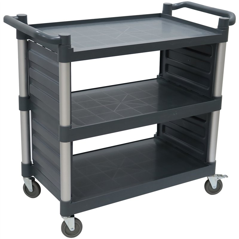 Professional 3-Tier Utility Trolley with Side Panels Grey Polypropylene 1010x500x980mm | Stalwart DA-HZMCC5013