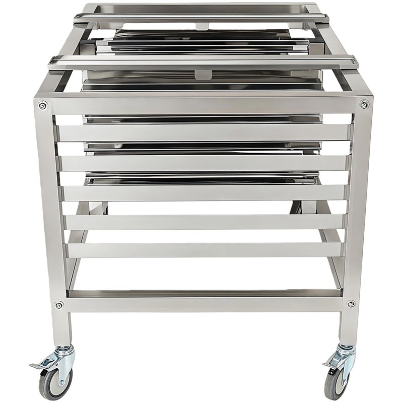 The Stalwart DA-WAN120 Stainless Steel Oven Stand is an essential addition to any commercial catering environment, offering reliable support, versatile storage, and easy maintenance.