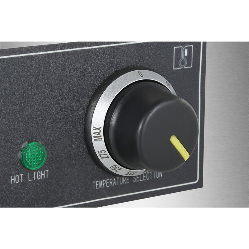 - Commercial countertop electric griddle with a smooth chromed steel cooking plate