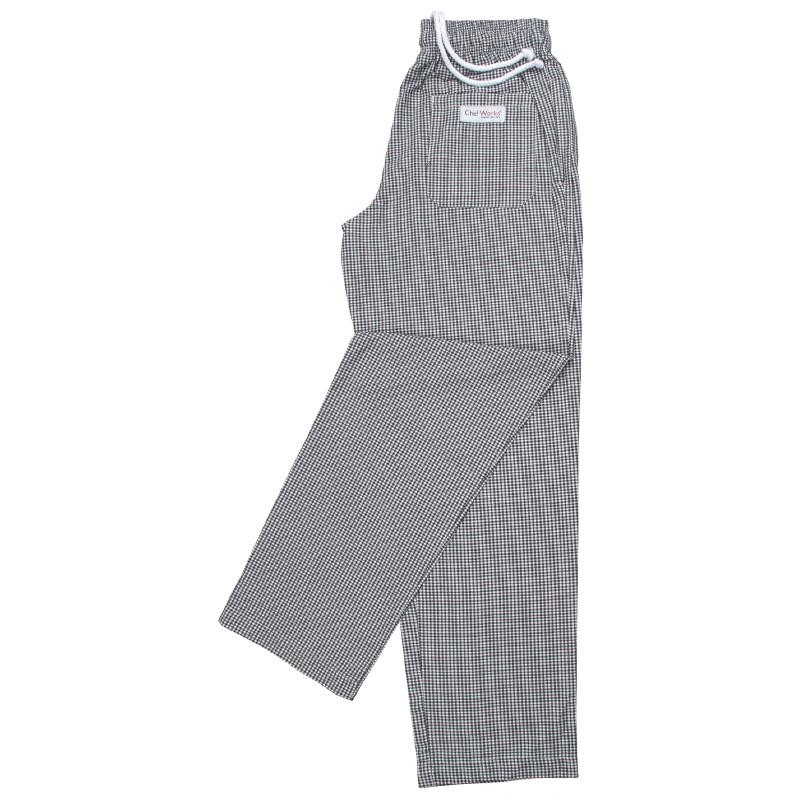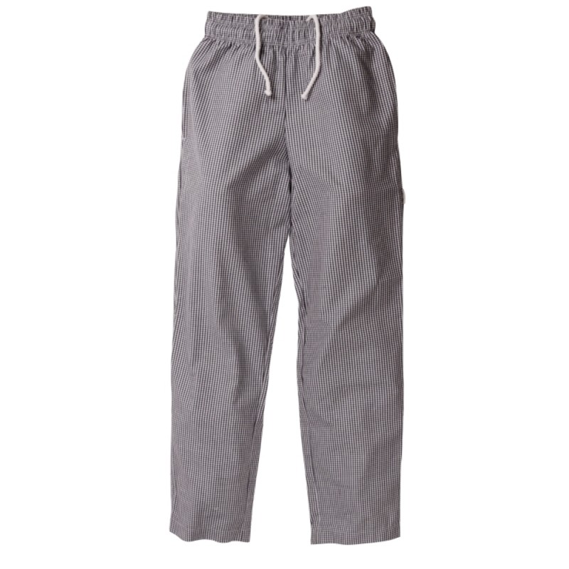 This pair of classic chef trousers (extra-large) are presented in a striking small black check pattern which can be matched to a variety of new and existing workwear. These versatile trousers provide all day comfort too. The extra wide elasticated drawstring waistband and long leg length which can be rolled up ensures that you can tailor a fit which is right for you. Made from a quality polycotton material these easy fit pants are easy laundering with no buttons to break.
