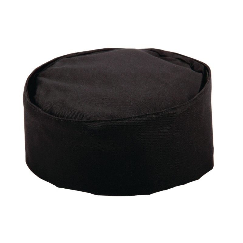 This black skull cap (25") is ideal for chefs and kitchen staff. Comfortable and stylish this headwear can be worn with a range of workwear to complete your staffs uniforms.