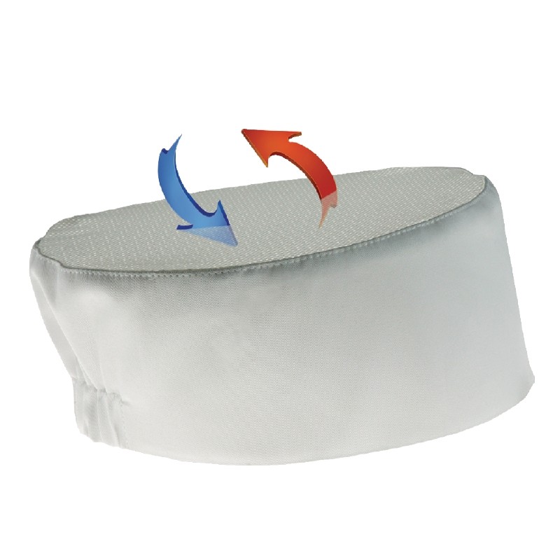 Lightweight twill fabric white beanie by Chef Works features a Cool Vent top which encourages air circulation keeping your head cool in the kitchen. Adjustable Velcro closure at the back means it can fit any sized head perfectly.