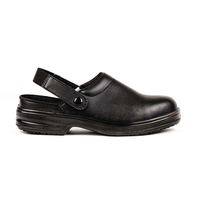 Slip-on safety clogs with removable backstrap for a more secure fit and added versatility. Machine washable.