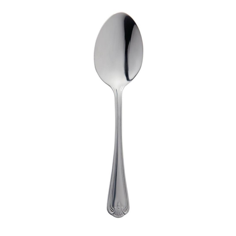 Polished 18/0 stainless steel with a shell motif detailed on the handle. Sold in dozens.