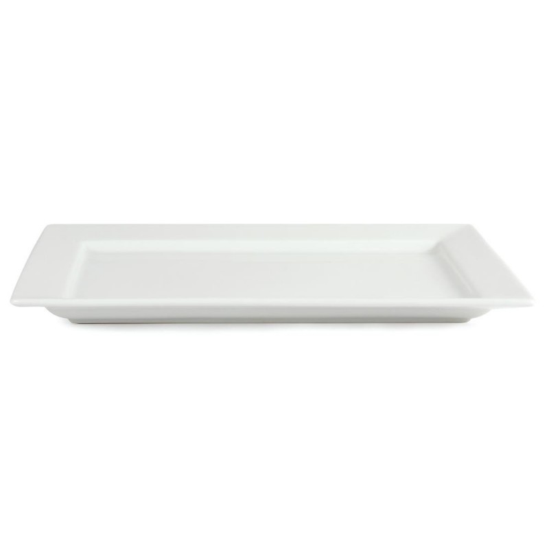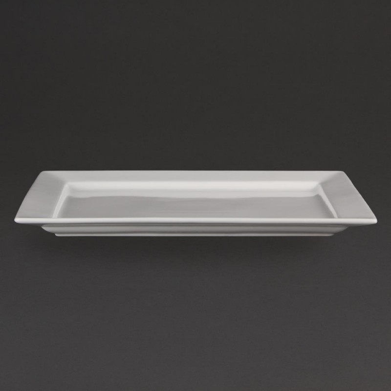 Great value hardwearing pure white porcelain wide rim 1 1 rectangular platter by Olympia with the added advantage of stackability and strengthened rolled edges for chip resistance.
